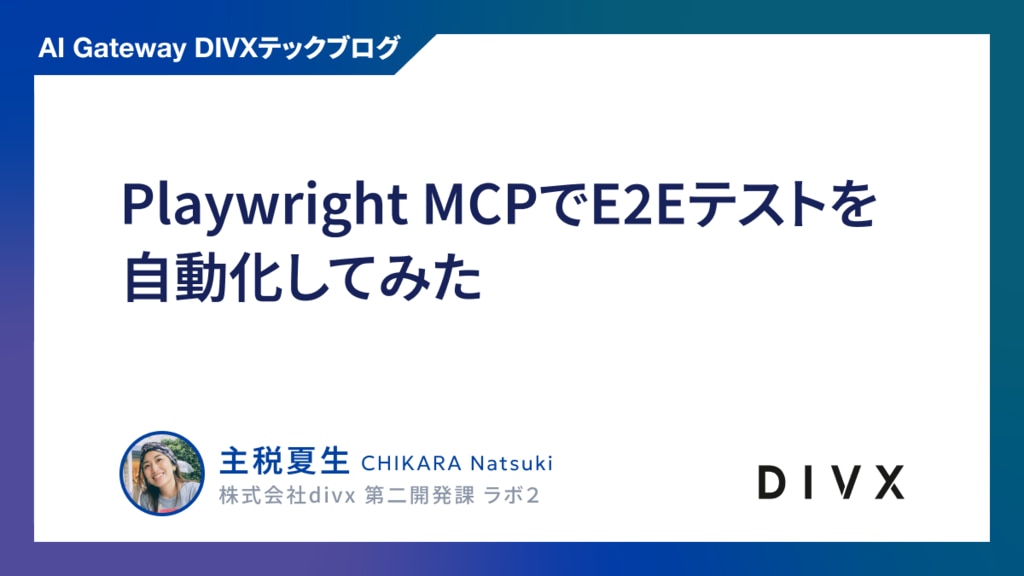 こんにちは、DIVXの主税です。現在、開発案件でプロジェクト管理を担当しています。 プロジェクト管理の仕事は多岐にわたりますが、その中でも動作確認はデリバリーの品質を左右する重要な業務です。 しかし、重要だからこそ丁寧にやりたいのに、時間が足りない。特に以下のような確認作業に時間を取られていました。 レスポンシブ対応の確認:PC・タブレット・スマートフォンそれぞれで画面を開いてスクリーンショットを撮る 異常系の確認:バリデーションエラーやタイムアウトなど、意図的にエラーになる状況を作って挙動を確認する 画面遷移の確認:複数画面を順番に遷移するか確認する そんな中で出会ったのが Playwright MCP でした。そもそもUI/UXの確認はテストコードで自動化しにくい領域でしたが、Claude Codeと組み合わせることで、自然言語の指示だけでブラウザ操作を自動化できます。 DIVXでは2023年3月からAI活用を義務化しており、今回のPlaywright MCPもその延長線上にあります。 本記事では、その活用体験を共有します。