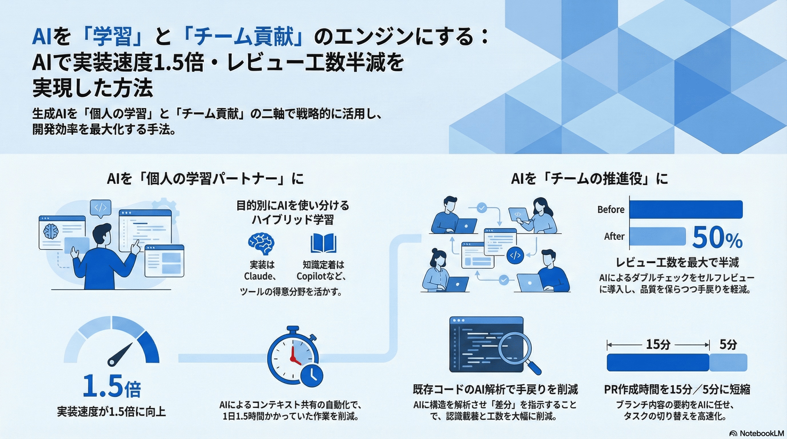 AIを「学習」と「チーム貢献」のエンジンにする:AIで実装速度1.5倍・レビュー工数半減を実現した方法