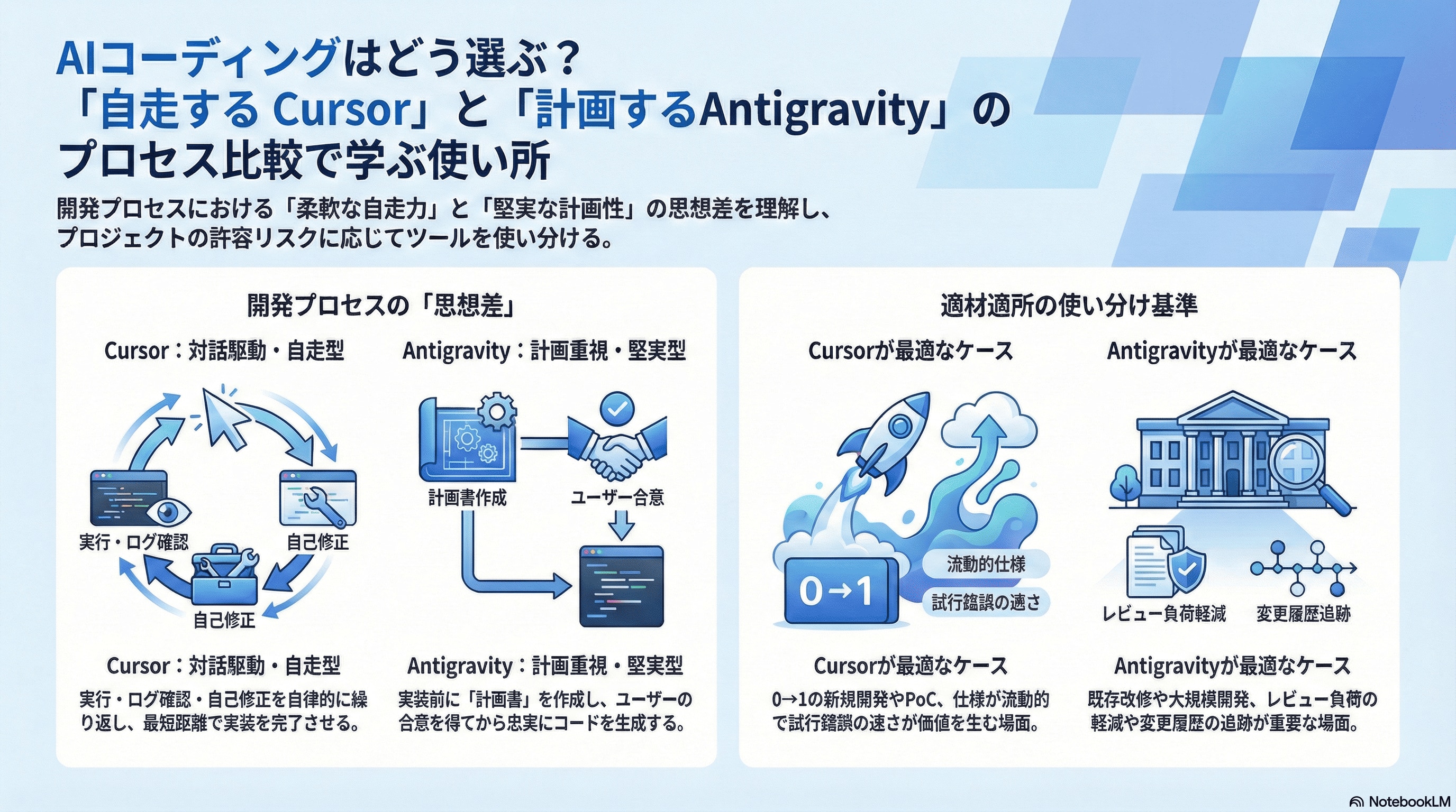 AIコーディングはどう選ぶ?「自走するCursor」と「計画するAntigravity」のプロセス比較で学ぶ使い所
