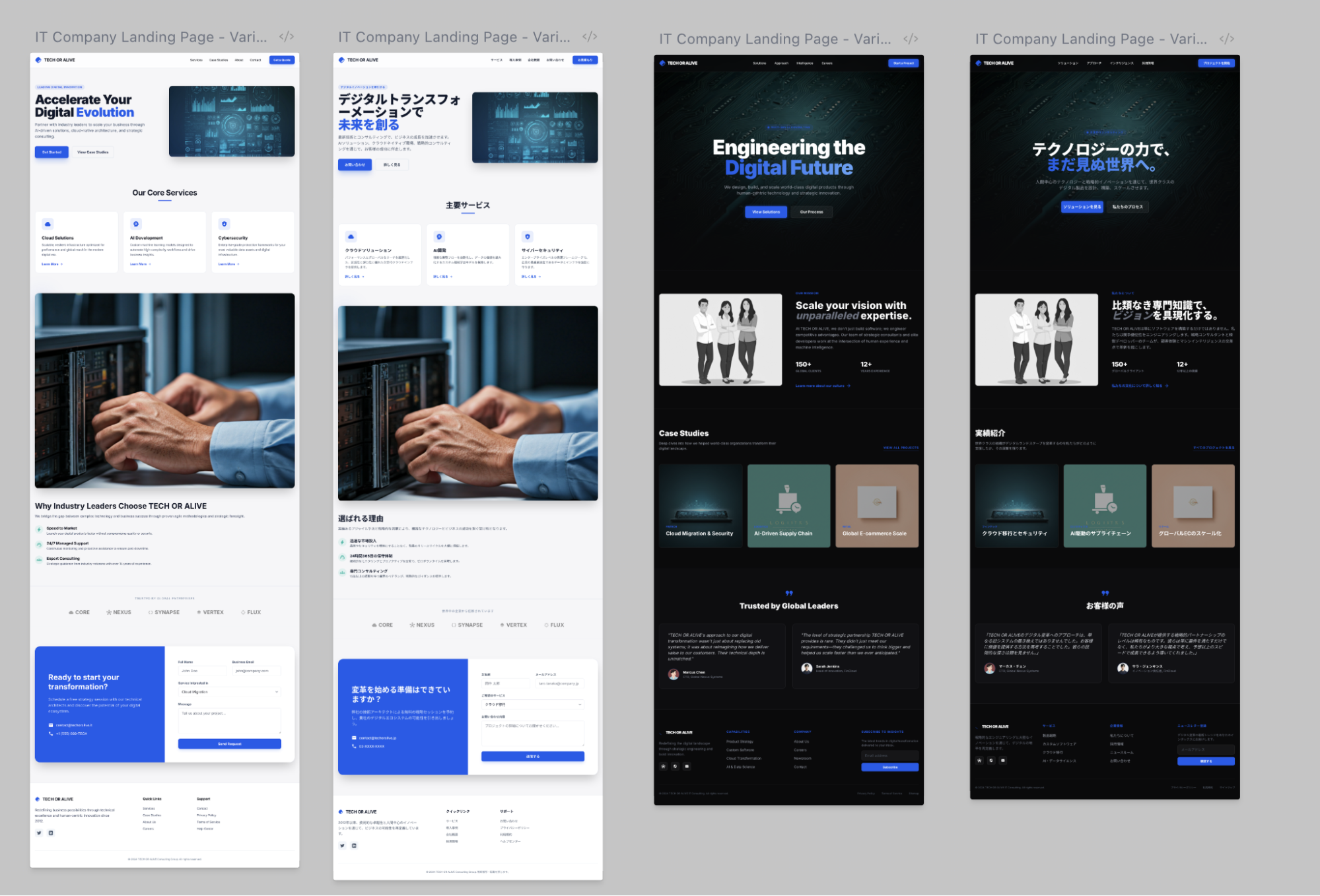 デザインにかかる時間を短縮したかったため、今回はStitchを活用しました。 最初はプロンプトに「IT会社のLanding Pageを作ってください。」と入力。すると、すぐにIT企業らしいデザインが出来上がりました。