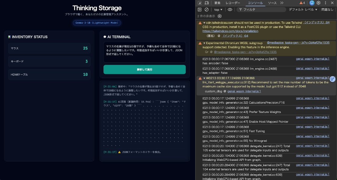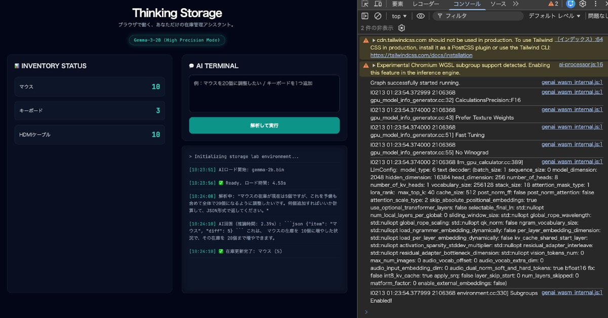 WebGPU×Gemma-3で構築するブラウザ完結型AI在庫管理 —— localStorageのデータをLLMが解釈する設計と実装